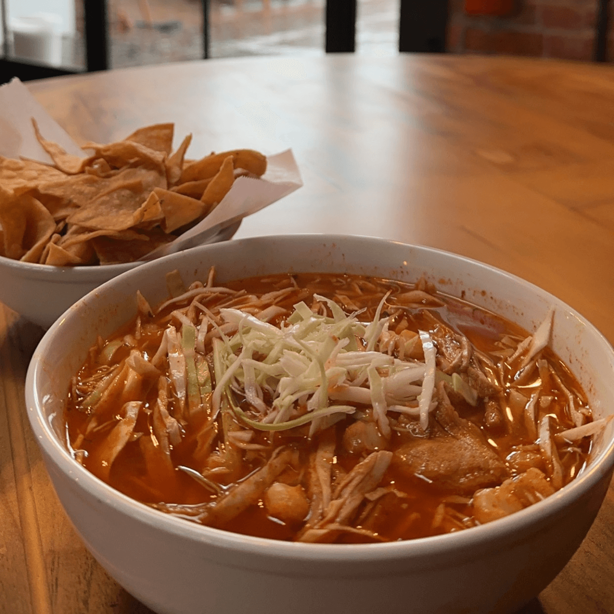 A traditional spicy Mexican soup made with tripe. Served with corn tortillas