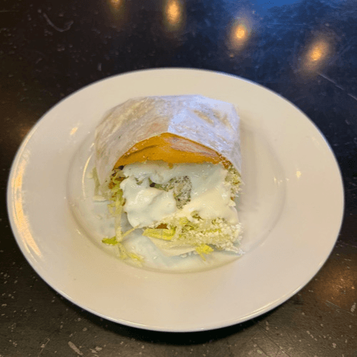 A corn pocket filled with your choice of meat, lettuce, sour cream & cheese